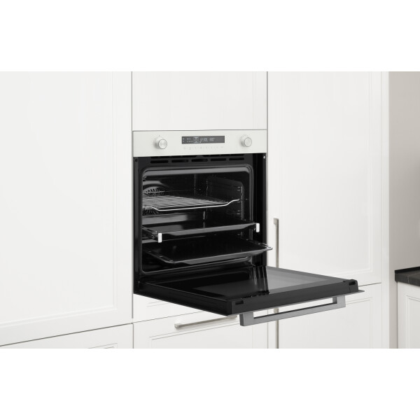 Богатая комплектация, включающая два универсальных противня, решетку и телескопические направляющие предоставит вам все необходимое для того, чтобы духовой шкаф радовал вас отличными и вкусными блюдами!