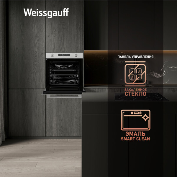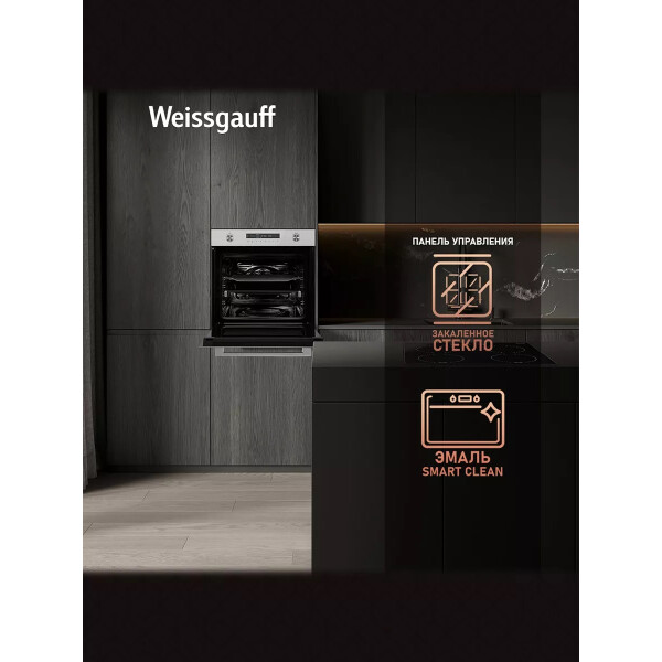 Универсальный дизайн, воплощенный в закаленном стекле - станет финальным штрихом в совершенстве облика этой модели. Каждый раз, взаимодействуя с духовым шкафом от Weissgauff, вы будете в полной мере ощущать, как он способен нагревать не только еду, но и согревать душу, став настоящим сердцем вашего уютного домашнего очага