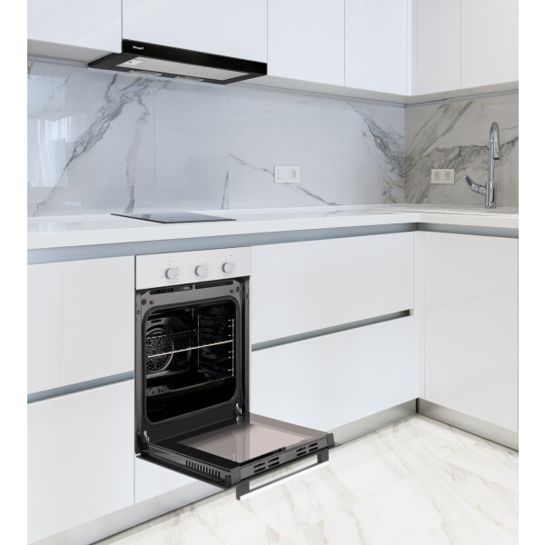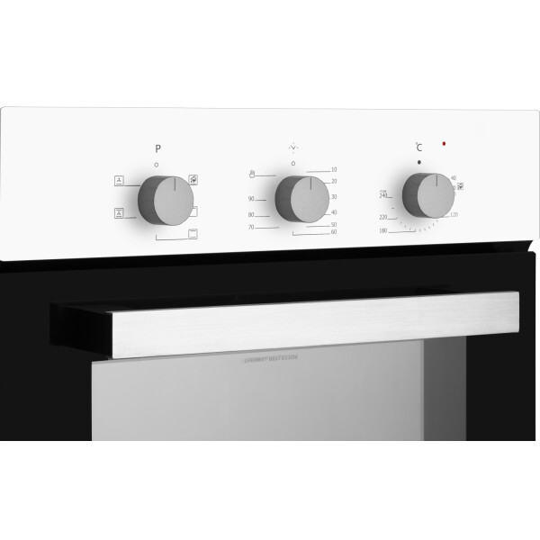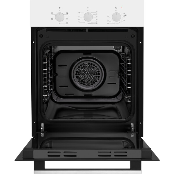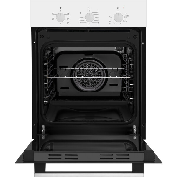 Компактный электрический духовой шкаф от Weissgauff шириной всего 45 см, выполненный в сочетании белого цвета панели управления и черного закаленного стекла дверцы, оснащён чувствительными поворотными рукоятками и конвекцией, позволяющей сделать распределение тепла в камере ещё более эффективным!