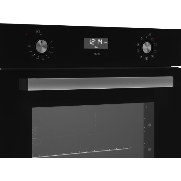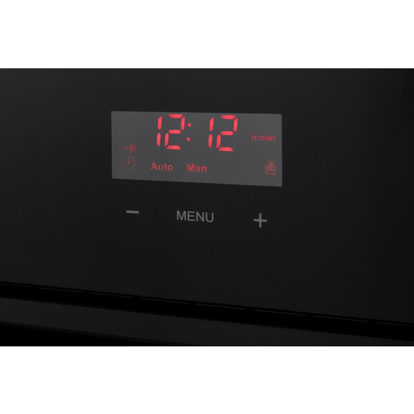 Самое главное в дисплее духового шкафа - это его возможность выводить понятную, чёткую и доступную информацию, охватывающую все интересующие вас аспекты состояния работы устройства в данный момент времени. В данной модели на дисплее отображаются настройки времени, автоматического приготовления, таймера и продолжительности работы.