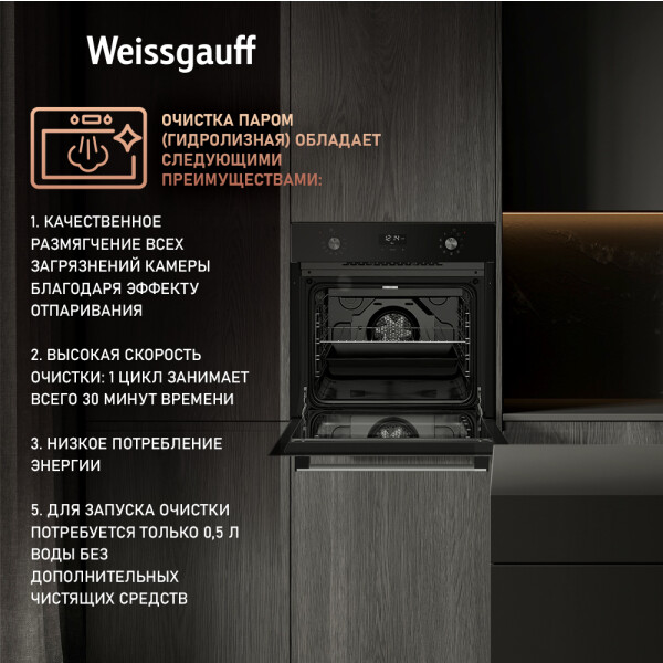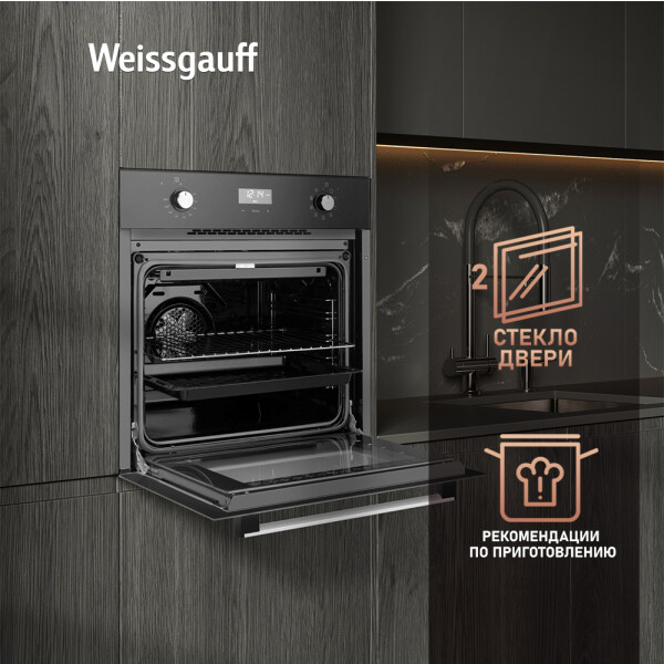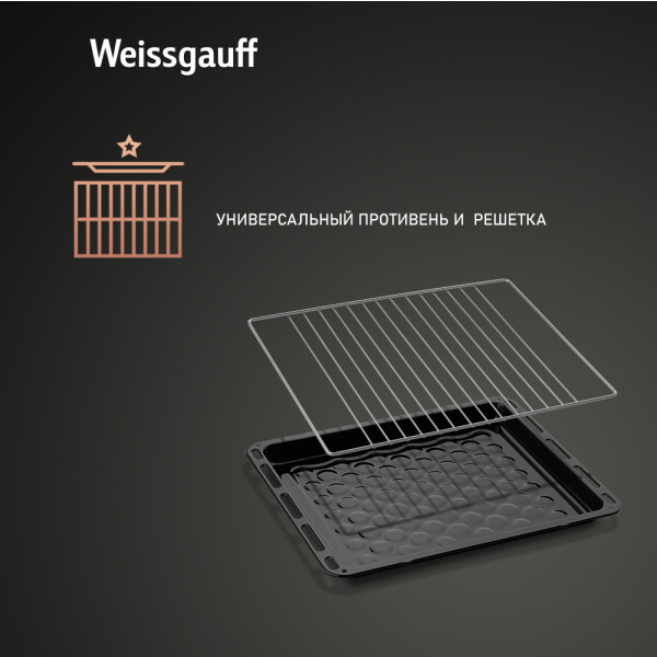 Weissgauff уделяет значительное внимание качеству комплектации своих моделей. Когда мы говорим о противне для духового шкафа, важно учитывать два момента. Он должен быть оснащён боковыми воздуховодами, которые будут позволять воздуху свободно циркулировать во внутреннем пространстве духовки, осуществляя равномерный прогрев блюда со всех сторон.
