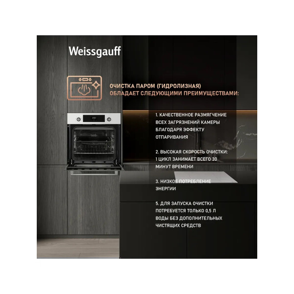 Удобный дисплей с сенсорным управлением - это настоящая гордость Weissgauff, ведь он не только является интуитивно понятным, но и великолепно реагирует на прикосновения с первого нажатия даже в том случае, если руки влажные или прохладные.