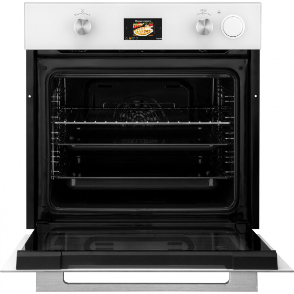 Премиальный SMART-дисплей с цветным графическим отображением, представляет собой полноценную систему умного управления вашим духовым шкафом, включая в себя электронную книгу рецептов, настройки режима ручного приготовления, активацию системы очистки камеры, управление функцией подачи пара, детальную и чувствительную настройку температуры, контроль предварительного разогрева, библиотеку избранного и многое другое!