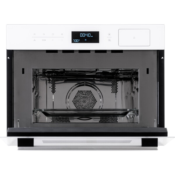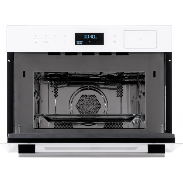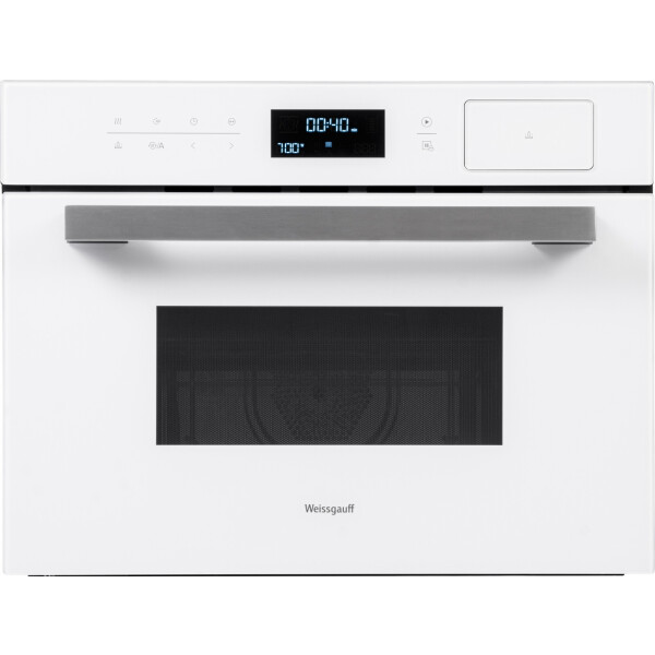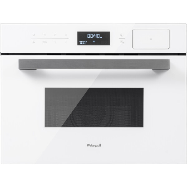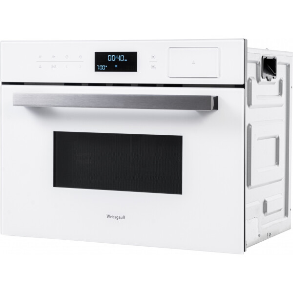 Компактный встраиваемый духовой шкаф от Weissgauff с функцией пара и СВЧ без поворотного стола, выполненный в белом цвете - это невероятное сочетание сразу трёх отдельных устройств, воплощённое в одной модели!