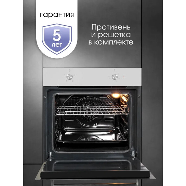 Мультифункциональная духовка имеет 5 режимов нагрева, гриль и вентилятор холодного воздуха, что позволит Вам приготовить практически любое блюдо.