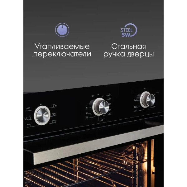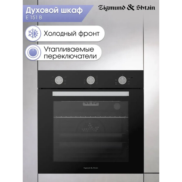 Электрическая духовка Zigmund Shtain E 151 B отлично подойдет для современной кухни. ведь ее фасад выполнен в чером цвете. Металлическая ручка дверцы. Утапливаемые переключатели и механический программатором сделают более комфортным уход за панелью управления, сам программатор даст Вам возможность установить момент включения. Общие параметры: Класс энергопотребления А, Тангенциальное охлаждение, Хромированные боковые направляющие, Два съемных стекла дверцы, Панорамное внутреннее стекло Smart Eye, Утапливаемые ручки управления, Холодный фронт, Механический таймер с отключением, Металлическая ручка дверцы, Эмаль легкой очистки, Освещение. Комплектация: 1 решетка, 1 противень, 1 глубокий противень Функции: Конвекция, Верхний и нижний нагреватель с конвекцией, Верхний и нижний нагреватель, Верхний нагреватель, Нижний нагреватель, Гриль.