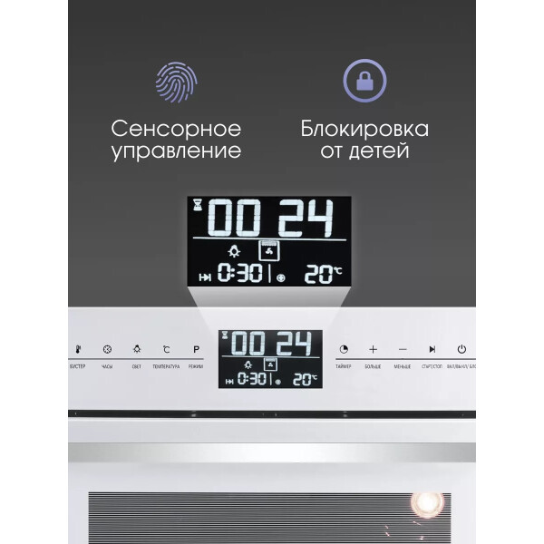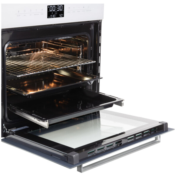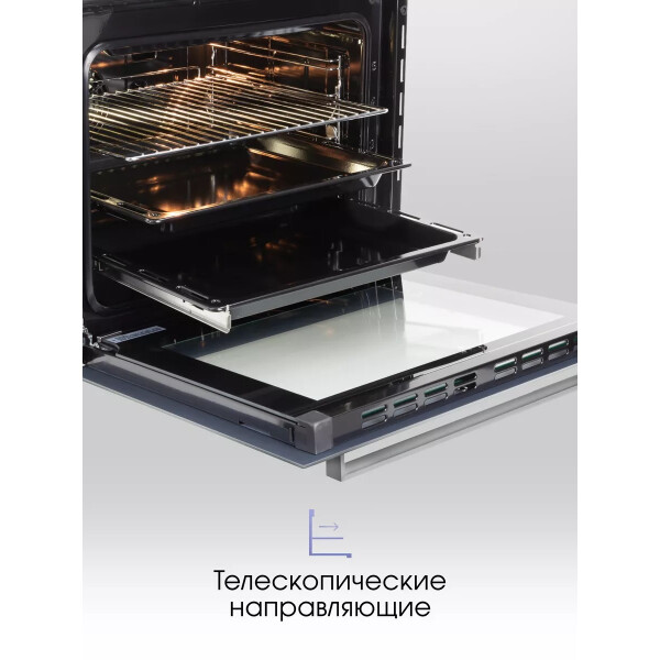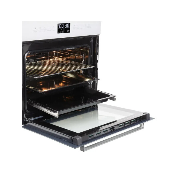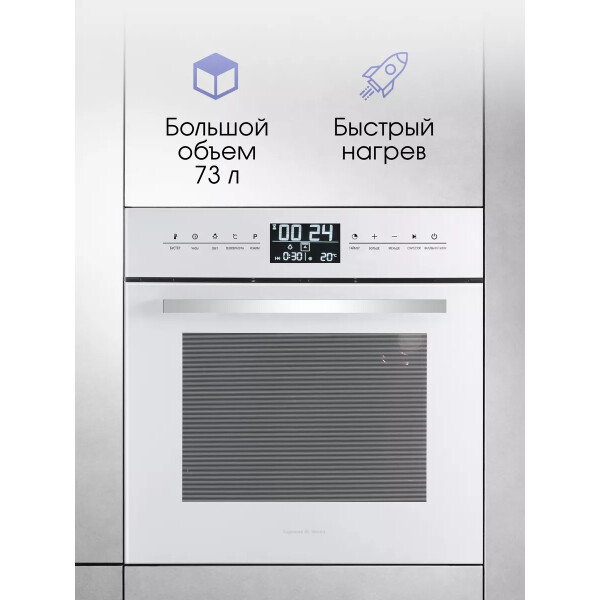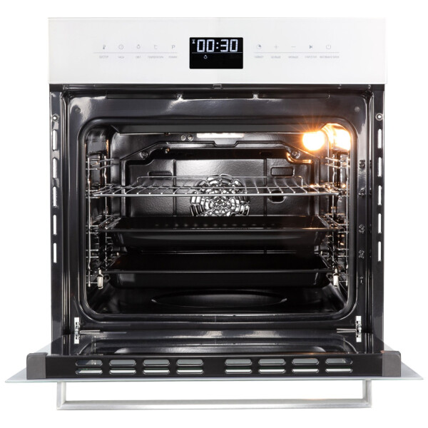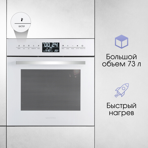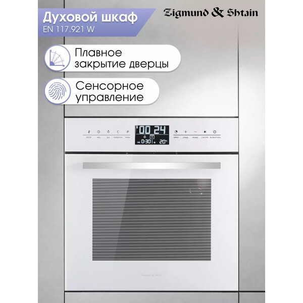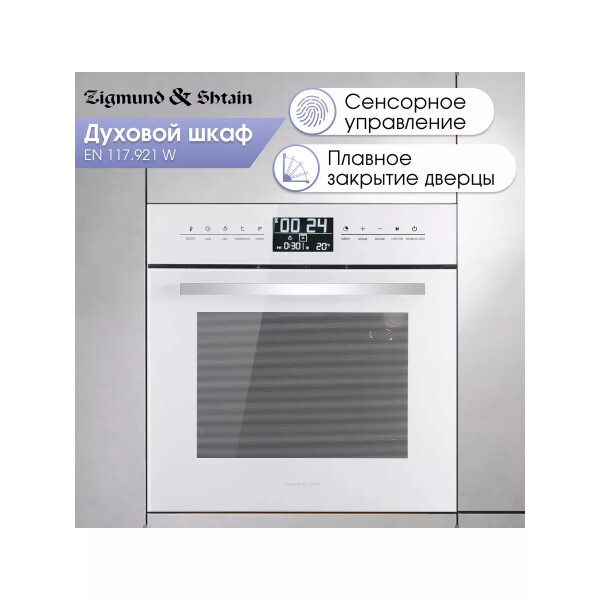Zigmund & Shtain EN 117.921 W - имеет одиннадцать режимов приготовления, электронный программатор, большой внутренний объем позволят Вам получить любое, даже большого размера блюдо отлично приготовленным в удобное для Вас время. Тангенциальное охлаждение, три стекла, защитная блокировка дверцы от детей сделают пользование прибором безопасным, а блокировка сенсорного управления сделает невозможным случайное включение или изменение настроек духовки. Сенсорный программатор с широким дисплеем в понятном виде даст знать о времени готовки, температуре выбраном режиме, ну а функция Быстрый разогрев поможет подготовить духовку к приготовлении. в короткое время. Еще больше удобства за безопасным контролем готовки блюд дают телескопические направляющие, так как они позволяют противням выдвигаться равномерно, добавляя безопасность при проверке качества приготовления еды или ее извлечении. С телескопическими направляющими не нужно удерживать противни на весу. Редкой особенностью для духовок с конвекцией является то, что у модели Zigmund Shtain EN 117.921 B в комплекте имеется вертел, и режимы работы духовки на вертеле, что порадует любителей курочки - гриль. Доводчик дверцы при определенном угле открытия сам плавно закроет дверцу шкафа практически бесшумно.