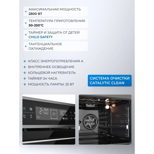 - Функция Защита от детей и тройное остекление дверцы позволит не беспокоиться за маленьких помощников;