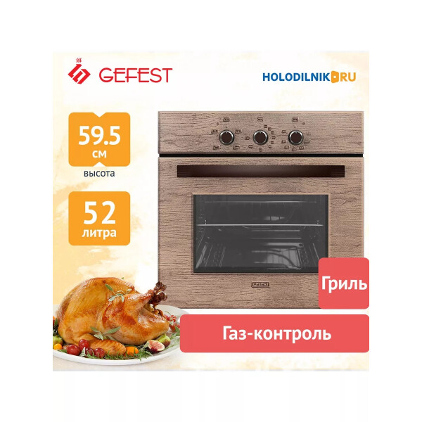 Газовый духовой шкаф Gefest ДГЭ 621-01 дарит вам отличную возможность разнообразить свой рацион вкусными и полезными блюдами. Это могут быть пироги, запеченные овощи и мясо, в том числе на гриле или на вертеле, с их помощью у вас получатся сочные, не пересушенные, но и не жирные блюда. Классический черный цвет и стильный дизайн вот то, что позволит шкафу органично смотреться в пространстве любой кухни. Духовка на 52 л разогреется довольно быстро до нужной температуры, контролировать которую можно с помощью термостата. Подсветка камеры дарит вам возможность контролировать весь процесс готовки в Gefest ДГЭ 621-01, а газ-контроль обеспечит абсолютную безопасность при эксплуатации прибора.