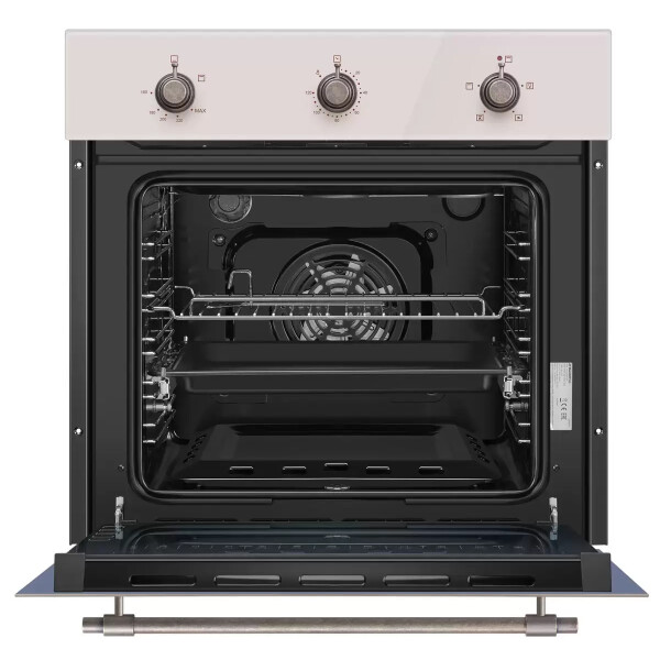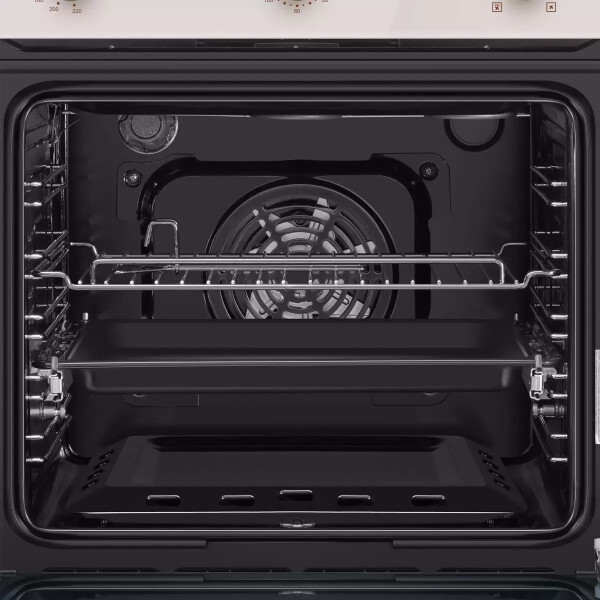 Модель обладает пятью режимами работы, включая нижний газовый нагрев с вентилятором, традиционное приготовление, гриль, гриль с конвекцией и функцию предварительного разогрева. Такое разнообразие позволяет выбрать идеальный режим для приготовления любого блюда. Кроме того, есть функция размораживания и подогрева посуды. Управление механическое, с помощью поворотных переключателей, что обеспечивает простоту и удобство использования. Внутренняя поверхность камеры покрыта эмалью легкой очистки, что значительно упрощает уход за духовым шкафом. Дверца съемная, что облегчает ее очистку. Количество стекол дверцы - три, что обеспечивает безопасность использования и сохраняет тепло внутри шкафа. Духовой шкаф оснащен внутренним освещением, что позволяет контролировать процесс приготовления. В комплекте идут глубокий поддон и решетка, а также телескопические направляющие на двух уровнях. Класс энергопотребления данной модели - A, что говорит о ее экономичности.