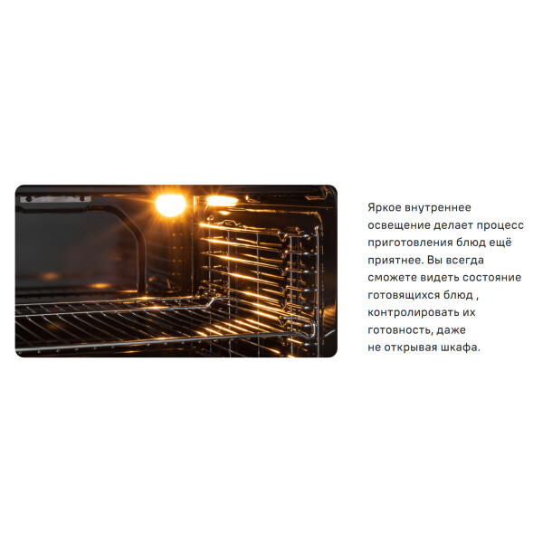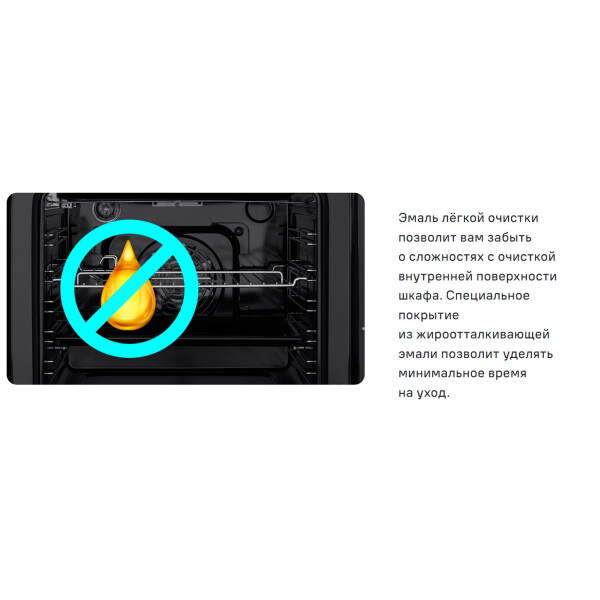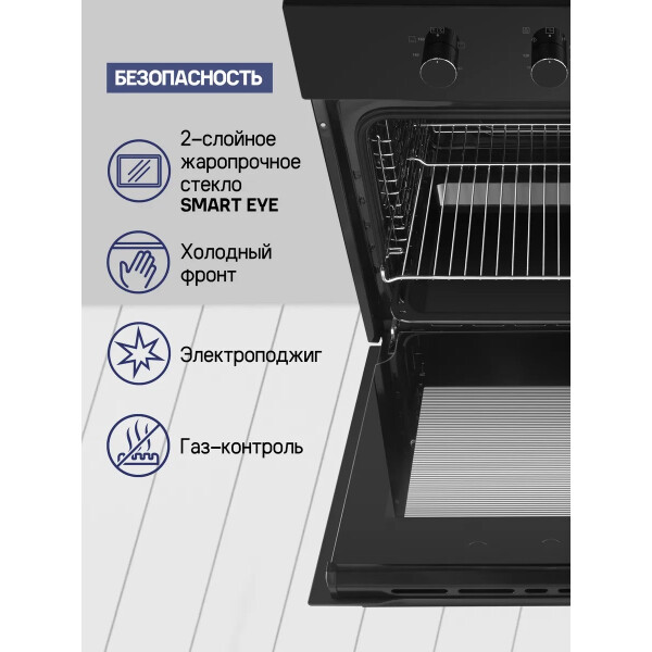 Надежность духового шкафа обеспечивается полным газ-контролем система, которая перекрывает подачу газа, если потух огонь. Автоматический электроподжиг и вентилятор охлаждения являются дополнительным преимуществом этой модели.
