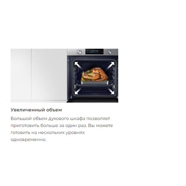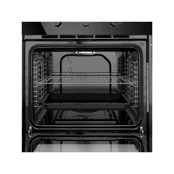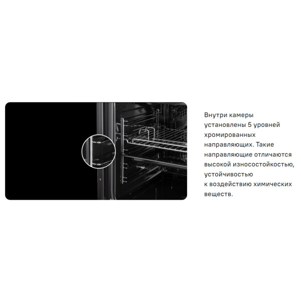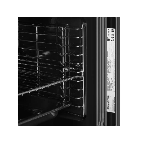 Объем 70 л при стандартной ширине 60 см позволяет готовить одновременно несколько блюд, разместив решетку или противень на одном из 5-ти уровней боковых направляющих. Внутреннее покрытие камеры выполнено из специальной легкоочищающейся эмали черного цвета.