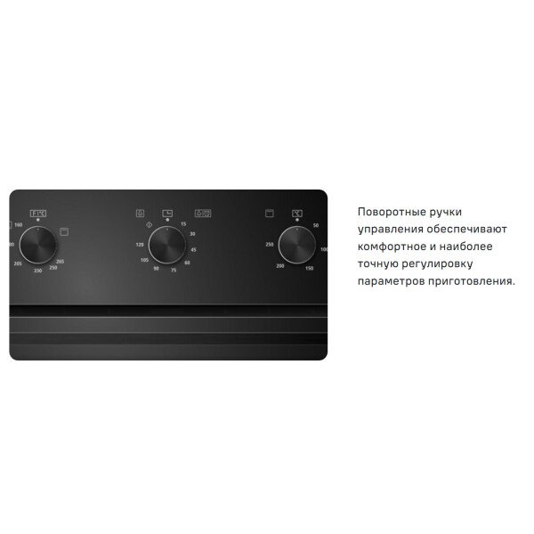 Механическое управление реализовано в виде поворотных ручек. Можно выбрать режим работы, температуру (160-265), установить таймер. В данной модели есть 3 режима работы: нижний нагрев, электрический гриль, освещение. Данная модель работает как при открытом, так и при закрытом гриле.