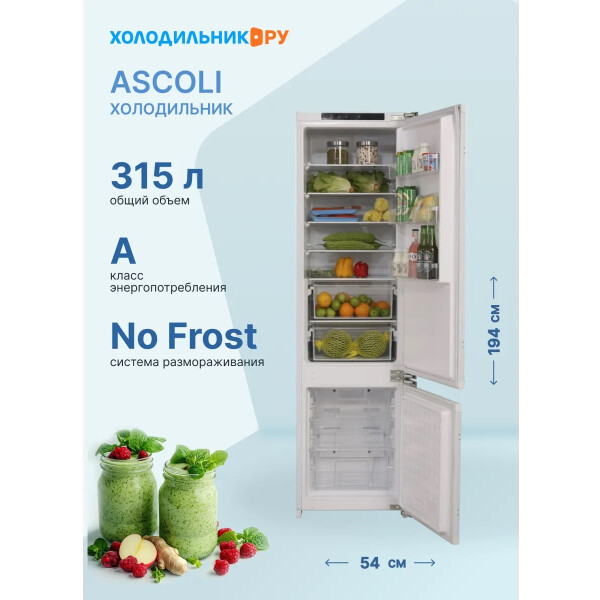 Встраиваемый холодильник Ascoli ADRF310WEBI имеет полезный объем 310 литров. Предусмотрена система NoFrost в морозильной камере.
