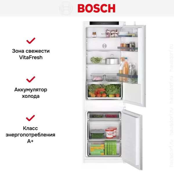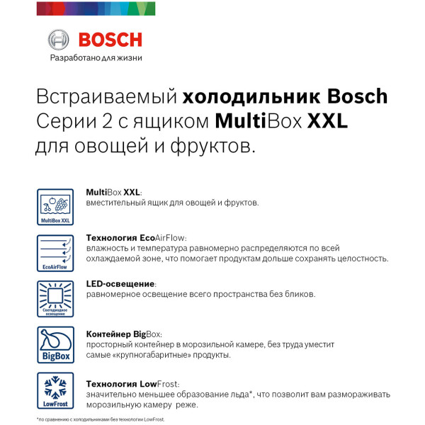 Светодиодная подсветка привносит в холодильник Bosch VitaFresh совершенно новую концепцию освещения, гарантируя равномерное освещение всего пространства без бликов. Светодиодные лампы потребляют меньше электроэнергии, чем обычные лампы накаливания, и служат в течение всего срока службы прибора.