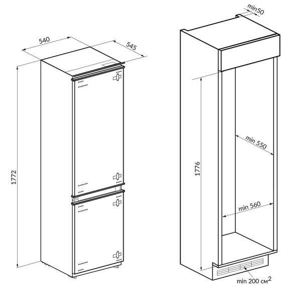 Размер ниши для встраивания (ШхГхВ): 56х 55 х177.6 см