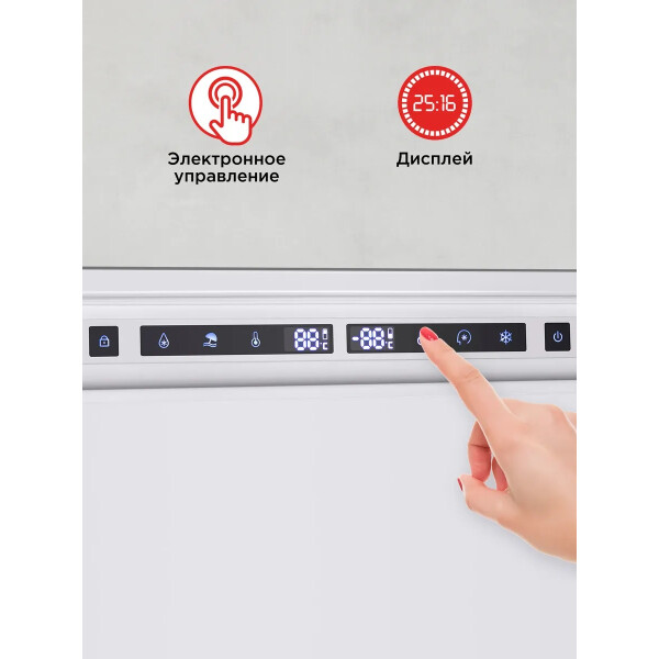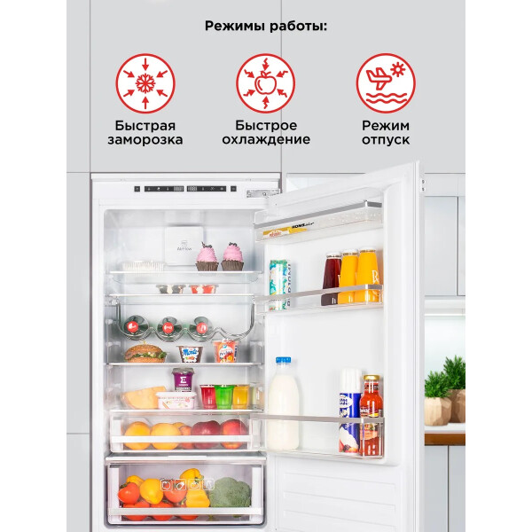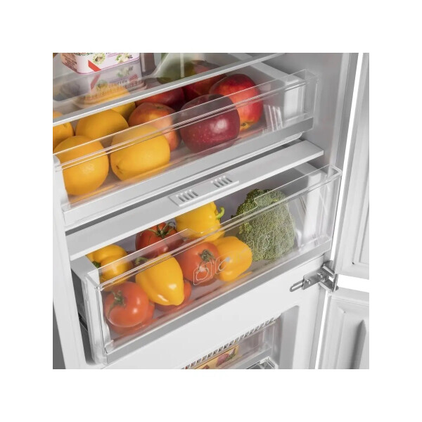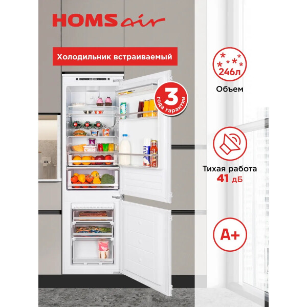 Встраиваемый холодильник HOMSair FB177NFFW с системой быстрого охлаждения AirFlow, которая равномерно распределяет холодные воздушные потоки внутри холодильной камеры. Чтобы не сбить настройки холодильника, предусмотрена функция блокировки панели управления. Для удобного использования холодильника предусмотрена функция ручного управления. Можно установить температуру в пределах: в холодильной камере от +2С до +10С, а в морозильной камере от -15С до -20С. Если холодильник продолжительное время не будет использоваться, то можно установитьрежим отпуск. Температура в холодильной камере будет +17С, а в морозильной -18С. Антибактериальное внутреннее покрытие предотвращает размножение микробов и образование плесени.