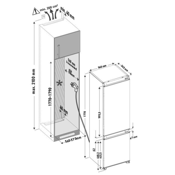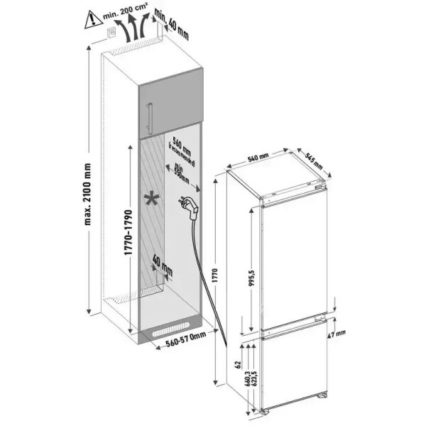 Встраиваемый двухкамерный холодильник-морозильник BRISTEN FNF выполнен в белом цвете шириной встраивания 60 см.