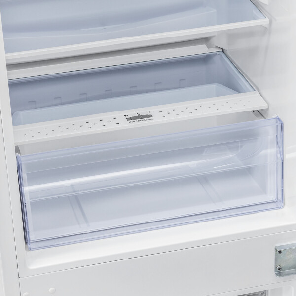 Холодильная камера оснащена 4 стеклянными полками, 4 дверными полками, а также зоной свежести CRISPER ZONE с контроллером влажности Humidity Control, который поможет создать оптимальные условия хранения для разных фруктов и овощей.