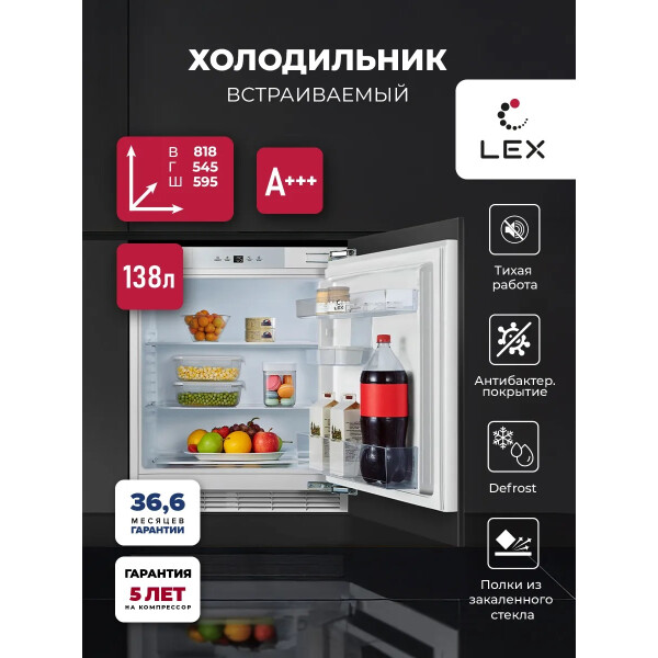 Встраиваемый однокамерный холодильник Lex RBI 102 DF CHHI000018 предназначен для хранения пищи и напитков.