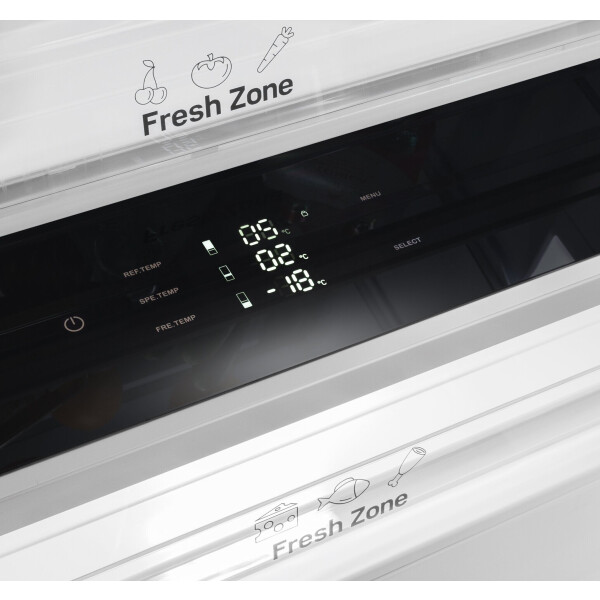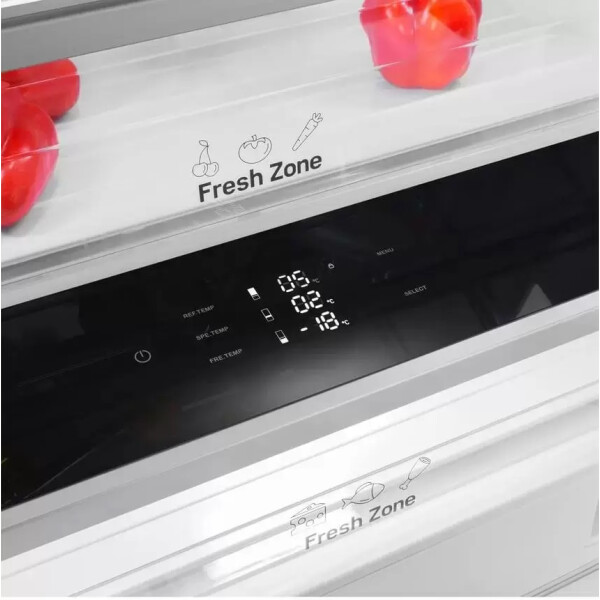 Зона свежести создаёт все условия, чтобы содержимое холодильника как можно дольше оставалось свежим. В зоне для хранения мяса и рыбы с автоматически регулируемой температурой от -1 C до +5 C. Панель холодного воздуха в верхней части холодильника обеспечивает более быстрое и равномерное охлаждение, чтобы ваши продукты сохранялись свежими еще дольше.