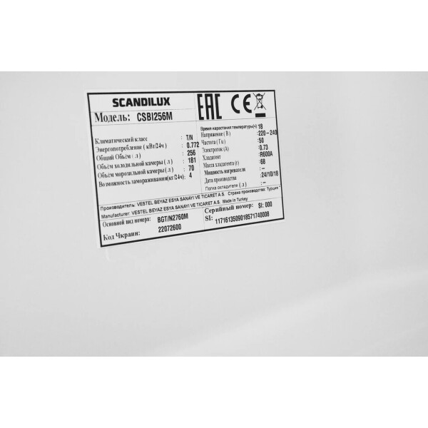 Встраиваемый двухкамерный холодильник Scandilux CSBI 256 M имеет классические габаритные размеры для этого типа техники: внушительный полезный объемом 251 л, достаточный для средней семьи из 3-4 человек.