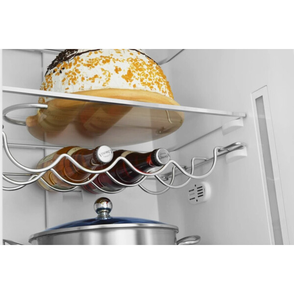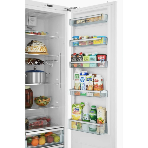 Технология V- LIFT позволяет регулировать высоту установки полки на двери по полозьям вверх/вниз для возможности размещения продуктов различного размера. Очень полезная функция для максимального использования пространства!