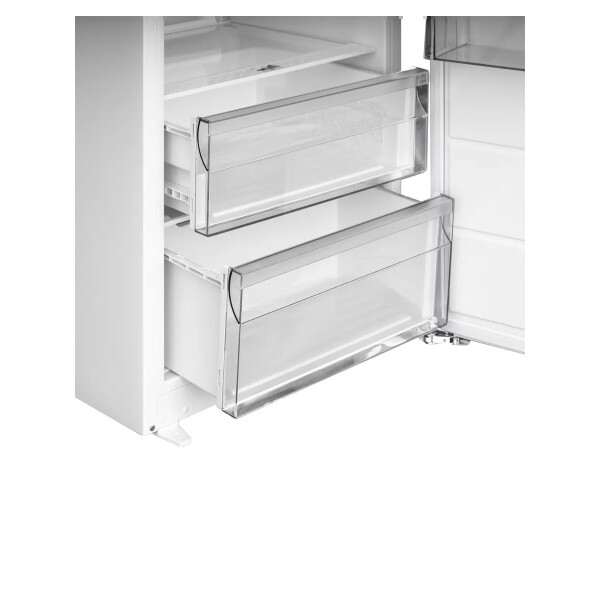 Низкий уровень шума (41 дБ) по сравнению с отдельно стоящими холодильниками, а после встраивания в шкаф он может стать ещё меньше.