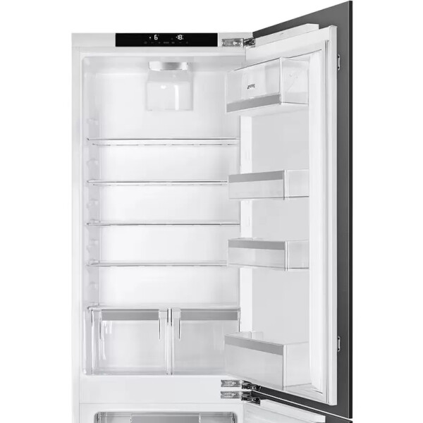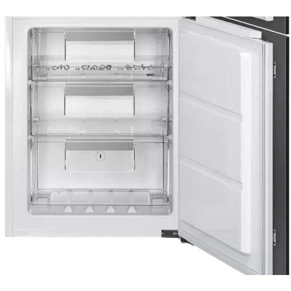 Вентилятор. Автоматическое размораживание. Зона сохранения свежести. Функция Отпуск. Быстрое охлаждение. Блокировка управления от детей. 4 регулируемые полки из закаленного стекла. 1 фиксированная полка из закаленного стекла. 2 ящика для овощей и фруктов.