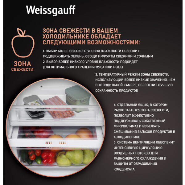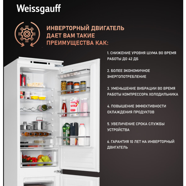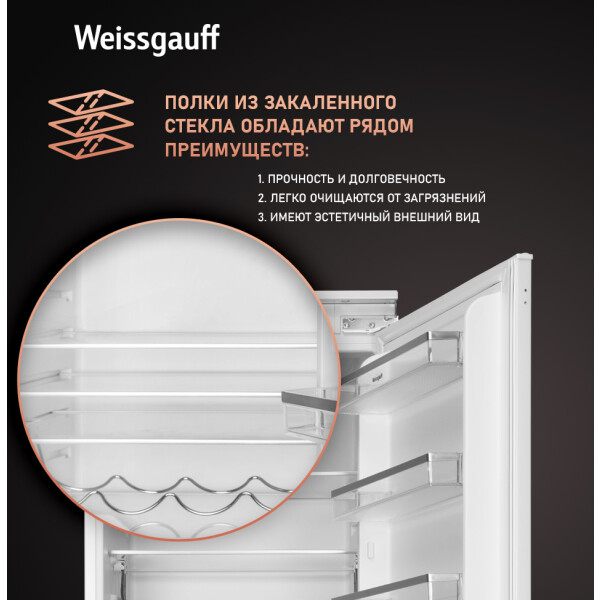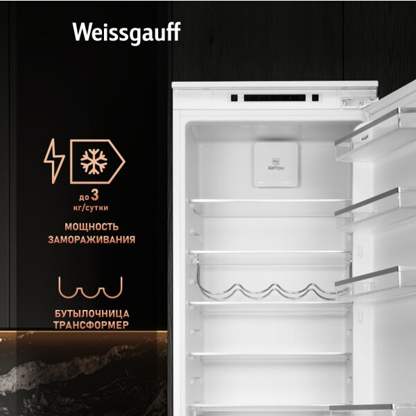 Встраиваемый холодильник от Weissgauff, обладающий гибридной системой размораживания, объемом 285 литров, и возможностью установить его практически в любую кухню благодаря оптимальному сочетанию габаритных размеров и технологических решений - вот те преимущества, которые позволяют назвать данную модель по-настоящему великолепным сочетанием цены и качества!