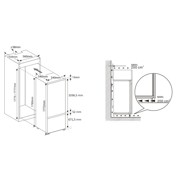 | Высота встраивания | 177