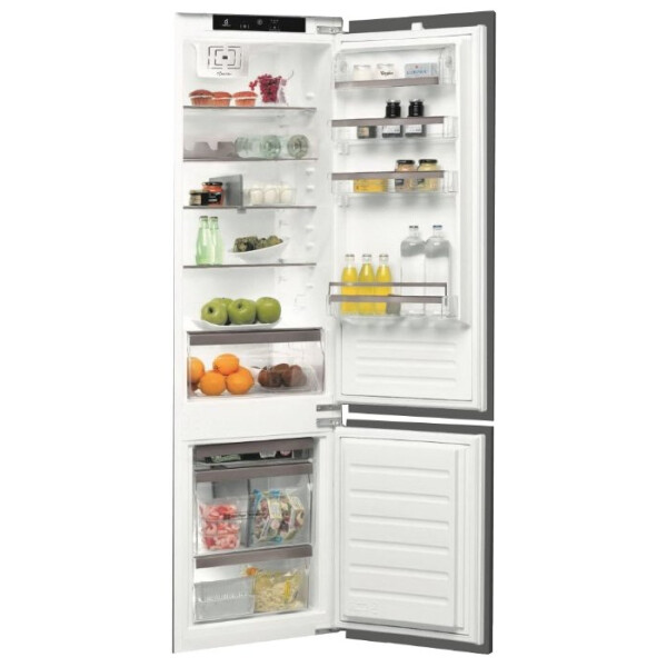 Встраиваемый холодильник с нижним расположением морозильной камеры Whirlpool ART 9810 A+ оборудован слайдерными креплениями мебельных фасадов. Конструкция модели предусматривает возможность перенавешивания дверцы. Внутренний светодиодный дисплей отображает полную информацию об установленных программных режимах. Система принудительной вентиляции обеспечивает равномерное охлаждение всего пространства холодильной камеры.
