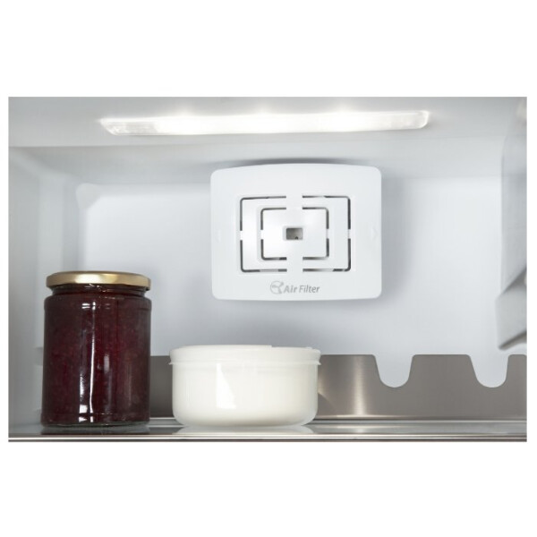 Антибактериальный фильтр предотвращает размножение микробов и возникновение неприятных запахов внутри холодильной камеры. Светодиодная подсветка обеспечивает хороший обзор всего пространства холодильной камеры. Для хранения овощей и фруктов предусмотрен ящик увеличенного объема на телескопических полозьях с разделителем Keep & Move.