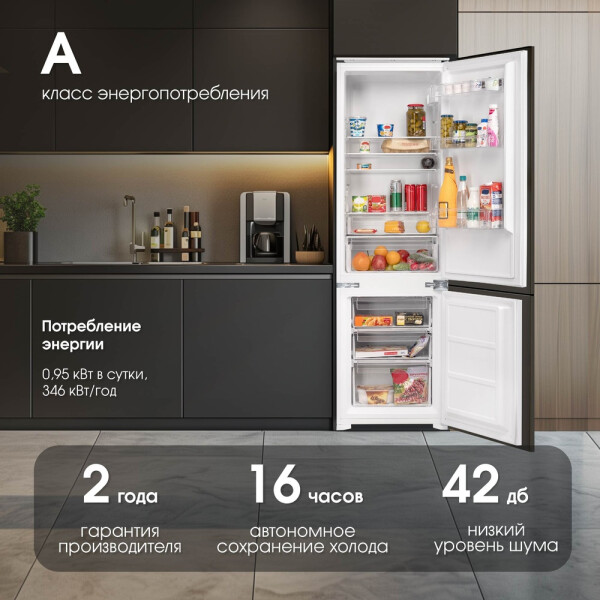 Класс энергопотребления холодильника - А, что соответствует самым высоким нормам энергосбережения и это отразится на Вашем кошельке в лучшую сторону.