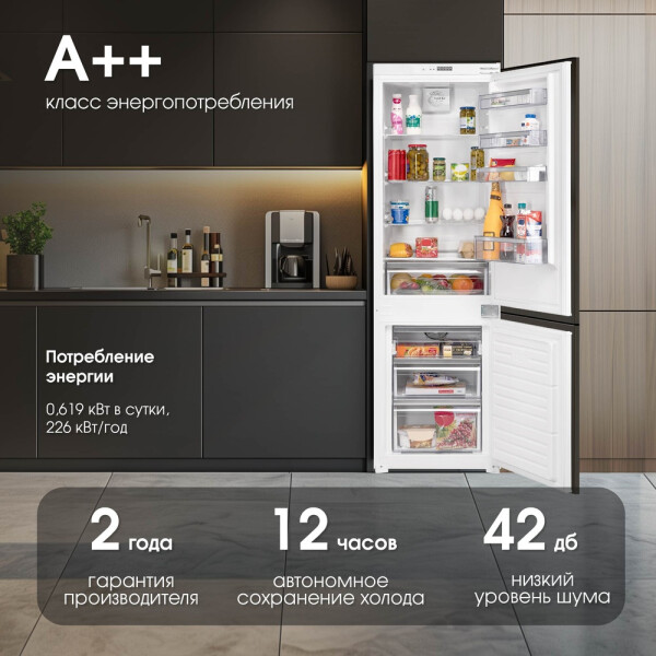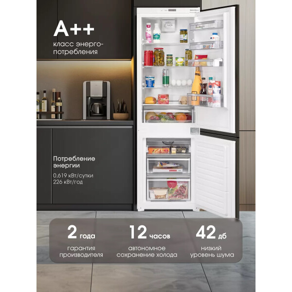 Простое злектронное управление с дисплеем, отличная эргономика делают пользование прибором простым и удобным. Класс энергопотребления холодильника - А++, что соответствует самым высоким нормам энергосбережения и это отразится на Вашем кошельке в лучшую сторону.