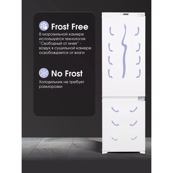 Низкий уровень шума делает пользование прибором еще более комфортным. При необходимости, можно изменить сторону открывания дверей. Холодильник оснащен системой Frost Free - тепреь Вам не нужно будет размораживать свой холодильник, за вас это сделает Frost Free.