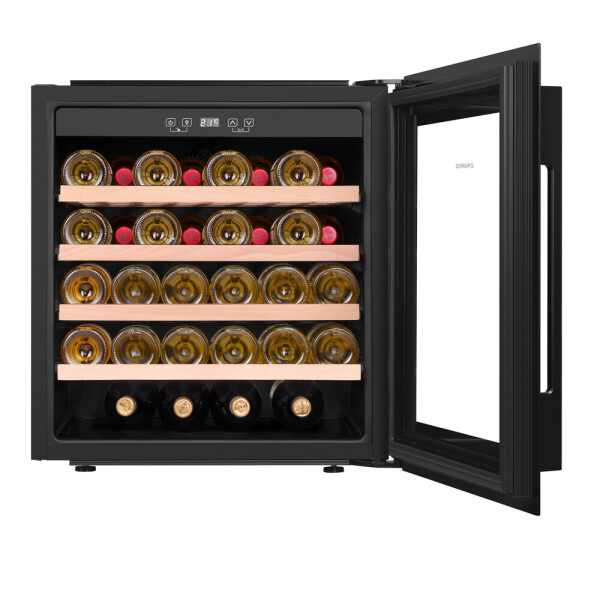 Изысканный дизайн модели делает её абсолютным выбором большинства: корпус выполнен из металла, окрашенной в чёрный цвет. Современная технология освещения зоны позволит вам в любое время эффектно продемонстрировать вашу винную коллекцию гостям. Каждая деталь модели гармонично дополняет друг друга, делая винный шкаф универсальным под любые стили интерьера.