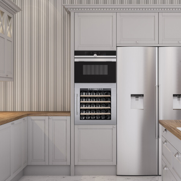 Винный шкаф стандартных размеров легко интегрируется в любую кухню.