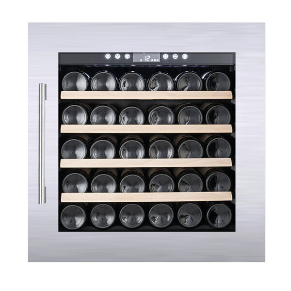 Винный шкаф имеет одну температурную зону, которую можно установить от 5 C до 20 C. Температура легко устанавливается на сенсорной панели винного шкафа.