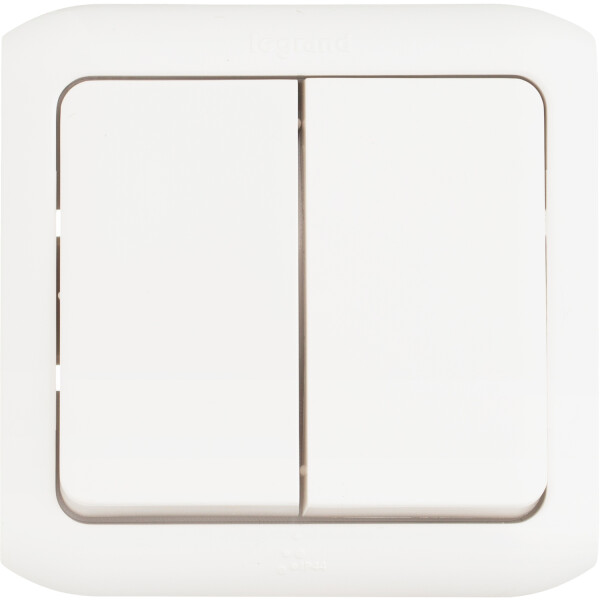 Выключатель двухклавишный Legrand Quteo 782302 (10 А, в сборе).