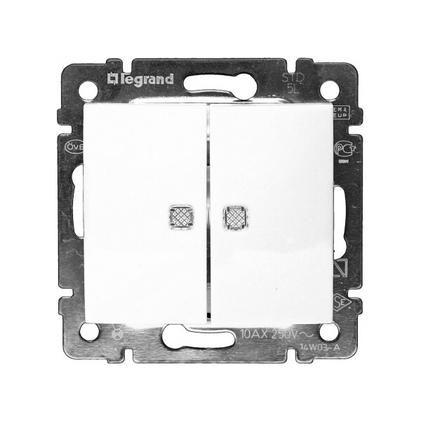 774428 Legrand Выключатель Valena, IP20, простой 2-х клавишный, с подсветкой (Белый).