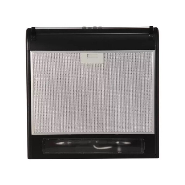 Основной цвет – черный. Вам понравится дизайн вытяжки, она способна сочетаться с другими элементами помещения. Конструкция выполнена из металла, есть компоненты из стекла.