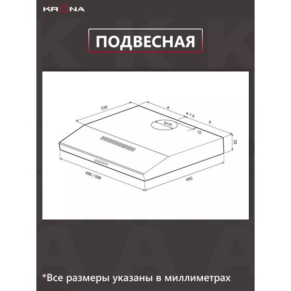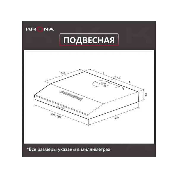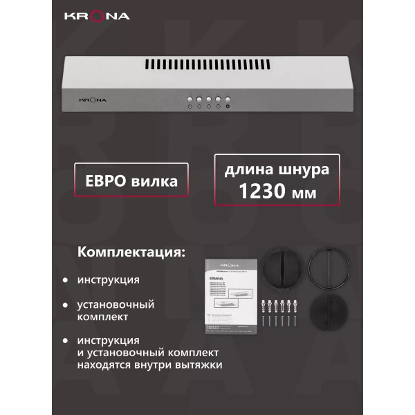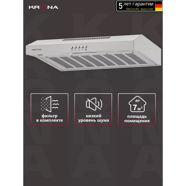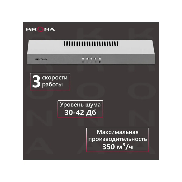 Подвесная вытяжка KRONA ERMINA порадует вас не только лаконичный дизайном, который идеально подойдет для любого кухонного интерьера, но и достойными характеристиками. Производительность вытяжки рассчитана для кухни до 7 кв.м.,а работает она практически бесшумно. Благодаря широкому выбору цветовых и размерных решений, эта модель отлично подойдет для любой кухни.