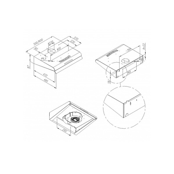 Стандартная вытяжка из высококлассной стали, встраивается над поверхностью плиты под шкафом по типу козырькового монтажа. Компактная, она идеально подойдет для стандартных кухонь не больших размеров (до 12 кв.м). Дизайн великолепно впишется в любой кухонный интерьер и благодаря высокому качеству материалов прослужит десятилетия.