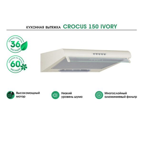 Вытяжка MBS Crocus 150 Ivory впишется в любую современную кухню. Благодаря своему компактному размеру и дизайну в стиле модерн она привлечет к себе внимание гостей и может быть встроена даже в небольшой кухонный гарнитур.