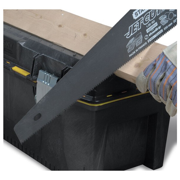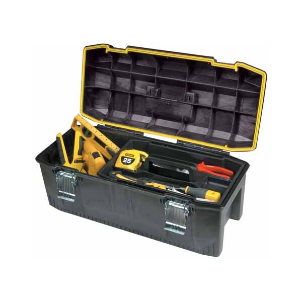 Ящик профессиональный влагозащитный FatMax 28" Stanley 1-93-935 предназначен для хранения и удобной транспортировки инструментов. Большие металлические защелки надежно защищают ящик от непреднамеренного открывания. Специальные отверстия на них позволяют отдельно приобрести и установить навесной замок. Инструментальный ящик применяется как в профессиональной сфере, так и в быту: он очень вместительный, помогает упорядочить нужные в работе предметы и всегда держать их под рукой. Удобная ручка позволяет легко транспортировать приспособление.