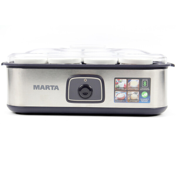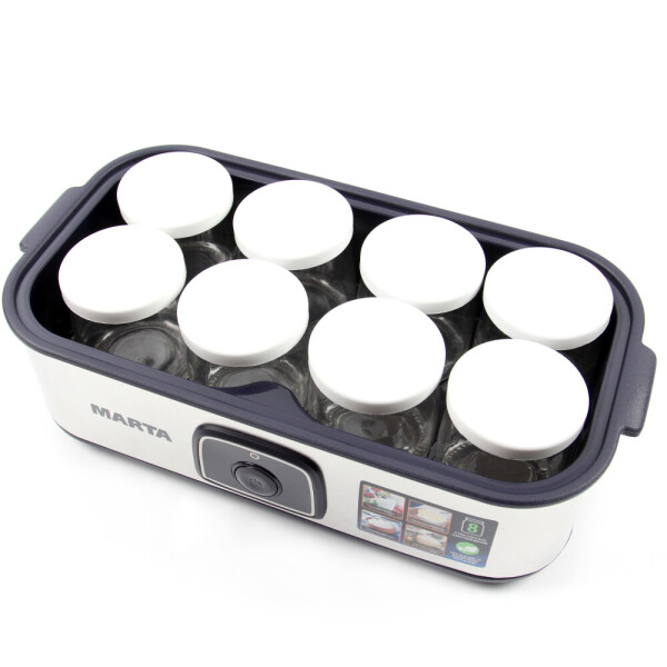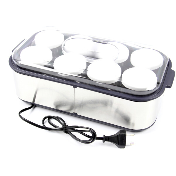 Отличный прибор для каждодневного приготовления живых йогуртов, кефира, ряженки, простокваши и других молочнокислых продуктов в домашних условиях без красителей консервантов и стабилизаторов. Комплект из 8-ми 180-граммовых стеклянных баночек с крышками надежно сохранит все полезные свойства продукта. В зависимости от времени приготовления, можно добиваться различной консистенции получаемых продуктов, например, йогуртов – от легких питьевых до густых десертных. Йогуртница обеспечит вкусное и здоровое молочное питание на каждый день, что будет особенно полезно детям.