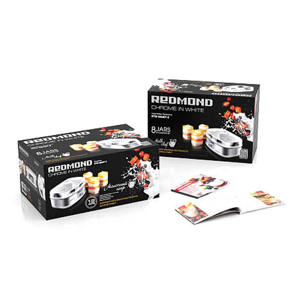 Прибор выполнен из нержавеющей стали и ударопрочного пластика. Благодаря удобной прямоугольной форме и классическому дизайну йогуртница Redmond RYM-M5401 идеально впишется в любой интерьер.