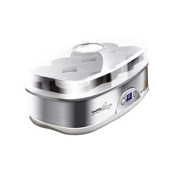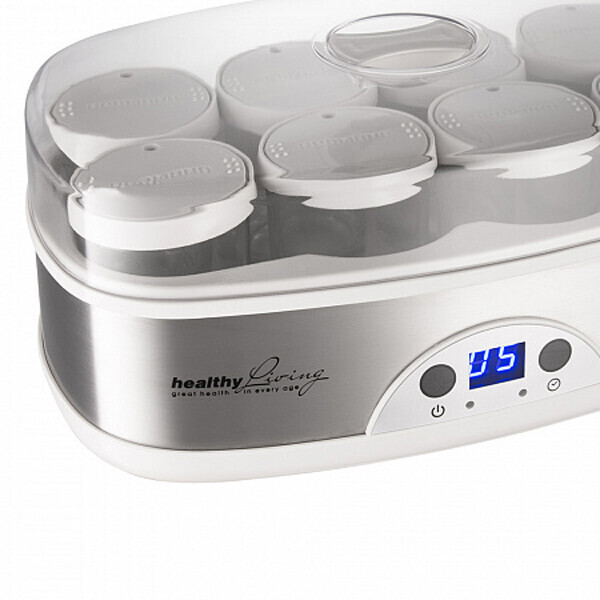 Йогуртница имеет 8 стеклянных емкостей, на крышках которых имеются специальные маркеры срока годности. Отслеживать срок годности готового продукта можно, установив дату и время его приготовления. Общий объём готовой продукции составляет 1440 мл.