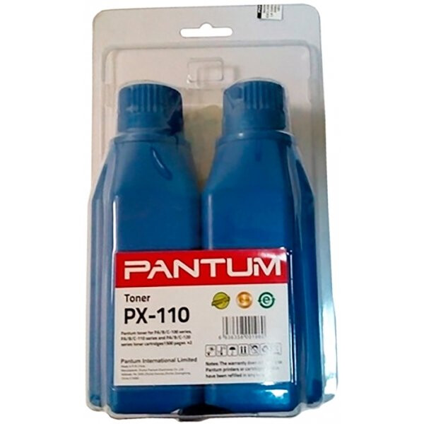 Оригинальный заправочный тонер Pantum PX-110 чёрного цвета для принтеров Pantum серий P2000 и M5000 включает в себя два флакона и 2 чипа, каждый заправляет картридж примерно на 1500 страниц.